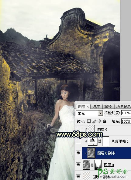 8、按Ctrl + J 把当前云彩图层复制一层,删除图层蒙版后按Ctrl + Alt + G 创建剪切蒙版。然后把混合模式改为“柔光”,不透明度改为:100%,效果如下图。