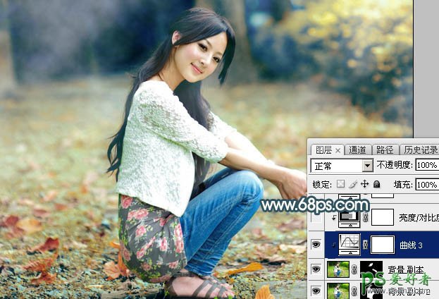 PS调色教程:给树林中自拍的可爱女孩生活照调出秋季蓝紫色