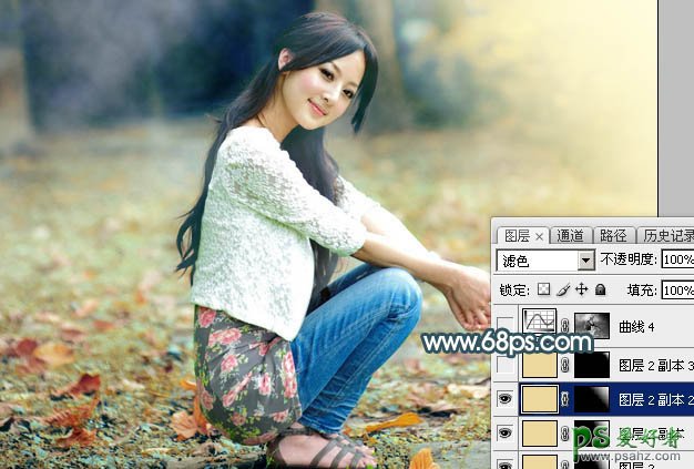 16、按Ctrl + J 把当前纯色调整图层复制一层,混合模式改为“滤色”,效果如下图。这几步给右上角区域增加淡黄色高光。