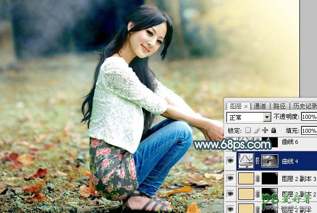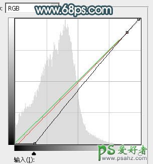 17、按Ctrl + Alt + 2 调出高光选区,按Ctrl + Shift + I 反选得到暗部选区,然后创建曲线调整图层,对RGB、红、绿通道进行调整,参数及效果如下图。这一步把暗部调暗一点,并增加绿色。