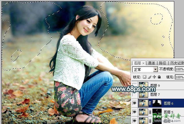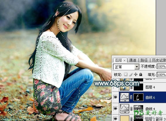 19、新建一个图层,按Ctrl + Alt + Shift + E 盖印图层,然后用模糊工具把下图选区部分模糊处理。