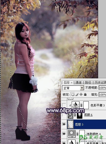 12、新建一个图层,把前景色设置为暗紫色,然后用透明度较低的柔边画笔,把左下角区域涂暗一点,如下图。