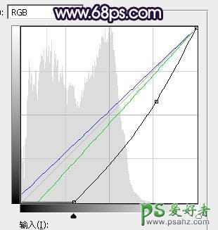 18、创建曲线调整图层,对RGB、绿、蓝通道进行调整,参数设置如图41,确定后把蒙版填充黑色,然后用柔边白色画笔把底部及左侧部分涂暗一点,效果如图42。