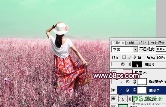 Photoshop给绿色草原上的唯美少女写真图片调出魔幻般意境红绿色