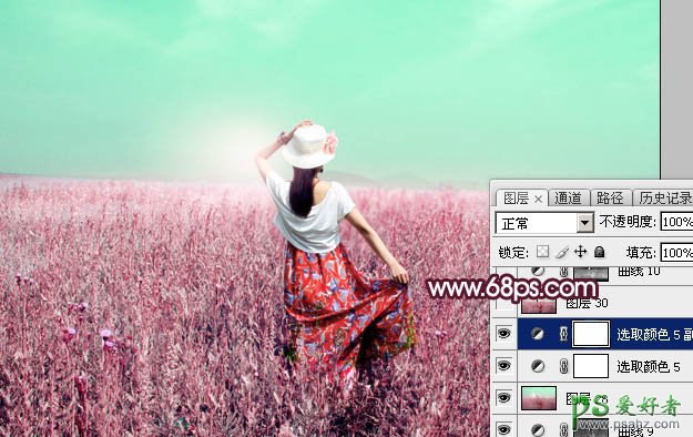 Photoshop给绿色草原上的唯美少女写真图片调出魔幻般意境红绿色