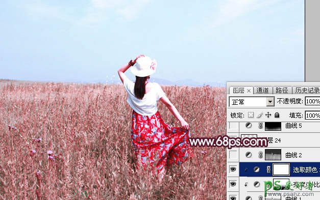 5、创建可选颜色调整图层,对红色,白色进行调整,参数设置如图13,14,确定后创建剪切蒙版,效果如图15。这一步给图片高光区域增加淡红色和淡青色。