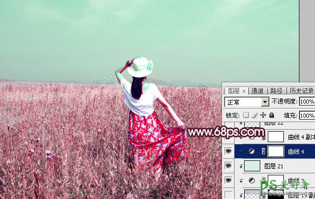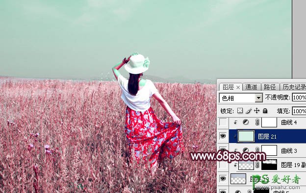 12、创建纯色调整图层,颜色设置为淡绿色:#D6F0E5,确定后把混合模式改为“色相”,然后创建剪切蒙版,效果如下图。
