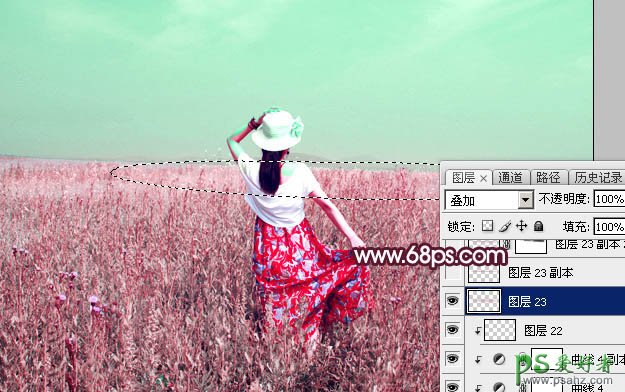 15、新建一个图层,用椭圆选框工具拉出下图所示的选区,羽化30个像素后填充暗红色:#C8999F,取消选区后把混合模式改为“叠加”,效果如下图。