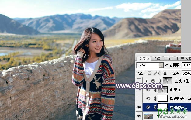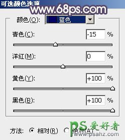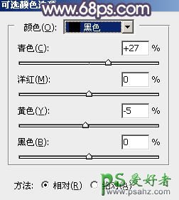 1、打开原图素材大图,创建可选颜色调整图层,对黄、绿、蓝、白、黑进行调整,参数设置如图1 - 5,效果如图6。这一步给图片增加橙黄色,并把蓝色调暗一点,高光区域增加淡青色。