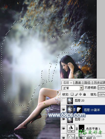 22、新建一个图层,按Ctrl + Alt + Shift + E 盖印图层,然后用模糊工具把下图选区部分模糊处理,效果如下图。