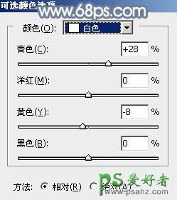 1、打开原图素材大图,创建可选颜色调整图层,对黄、绿、白进行调整,参数设置如图1 - 3,效果如图4。这一步把绿色转为青绿色,高光区域增加淡青色。