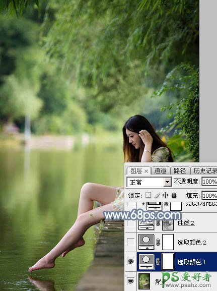 Photoshop给外景自拍的长腿美足少女生活照调出柔和的古典青蓝色
