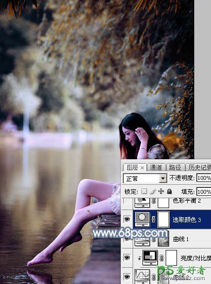 Photoshop给外景自拍的长腿美足少女生活照调出柔和的古典青蓝色