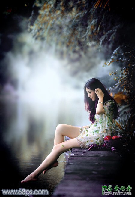 Photoshop给外景自拍的长腿美足少女生活照调出柔和的古典青蓝色,素材图片主色为黄绿色,调色的时候先把绿色转为青绿色;然后把黄绿色转为橙黄色;再给暗部增加蓝色,高光区域增加淡青色;后期局部渲染一些高光,加上暗角,加强一下局部明暗即可。 原图