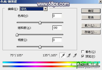 2、创建色相/饱和度调整图层,对绿色,青色进行调整,参数及效果如下图。这一步快速把图片中的绿色及青色转为中性色。