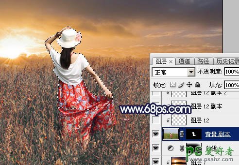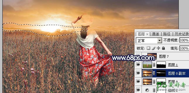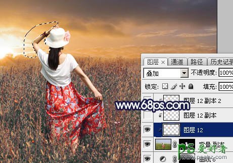 13、把当前图层复制一层,混合模式改为“正常”,再把蒙版填充黑色,用白色画笔把下图选区部分擦出来。