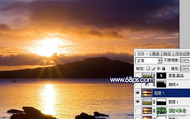 10、打开霞光素材,拖进来,摆好位置,如下图。