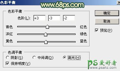 5、创建色彩平衡调整图层,对阴影,高光进行调整,参数及效果如下图。这一步给图片暗部增加暖色。