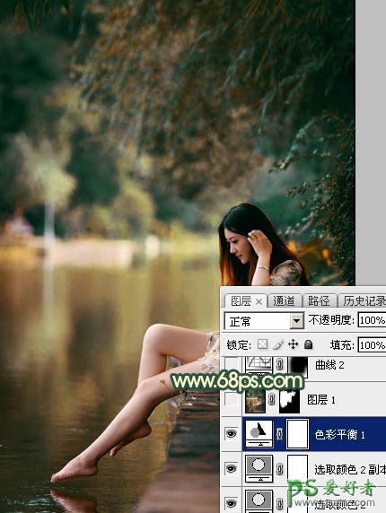PS女生唯美图片调色:给水塘边自拍的少女清新照片调出唯美的黄色