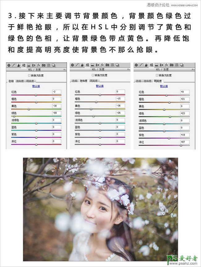 PS图片调色教程:给草地上自拍的女生唯美小清新照片调出秋季...