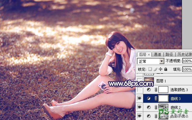 PS图片调色教程:给草地上自拍的女生唯美小清新照片调出秋季蓝红