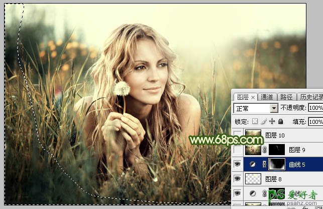 12、创建曲线调整图层,对RGB通道进行调整,参数设置如图29,确定后把蒙版填充黑色,再用白色画笔把底部及边角部分擦出来,效果如图30。这一步给图片增加暗角。