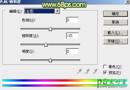3、创建色相/饱和度调整图层,对全图、红、黄、绿、青进行调整,参数设置如图9 - 13,效果如图14。这一步把图片的主色转为中性色。