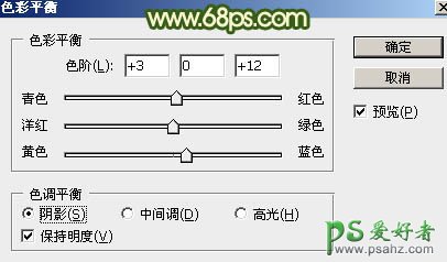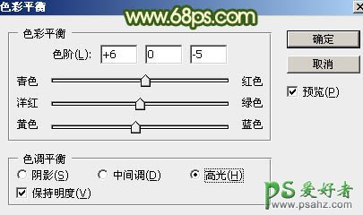 5、创建色彩平衡调整图层,对阴影,高光进行调整,参数及效果如下图。这一步给图片增加红色。