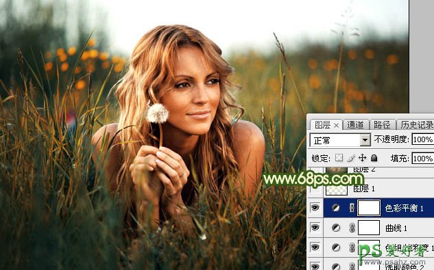 PS图片调色教程:给草地上自拍的女生唯美小清新照片调出秋季...