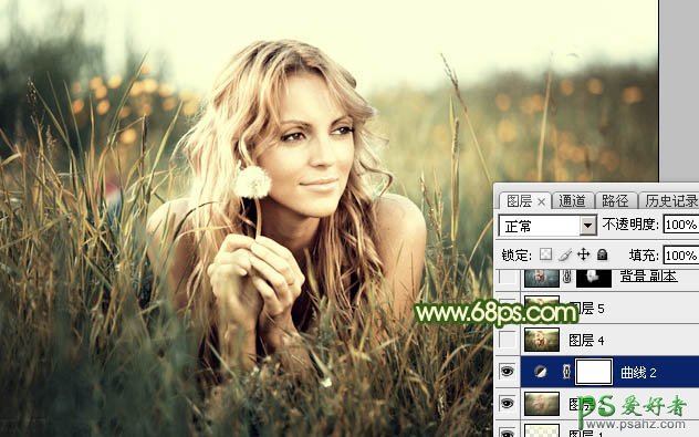 PS图片调色教程:给草地上自拍的女生唯美小清新照片调出秋季...