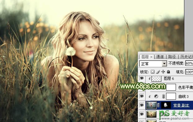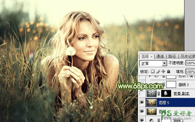 PS图片调色教程:给草地上自拍的女生唯美小清新照片调出秋季...