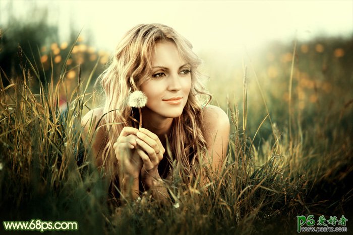 PS图片调色教程:给草地上自拍的女生唯美小清新照片调出秋季...