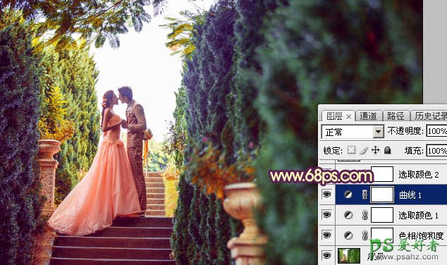 PS婚片调色教程:给唯美的情侣婚片外景照调出黄调华丽的霞光色