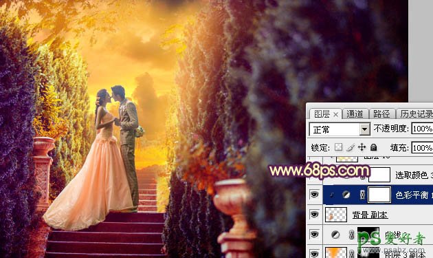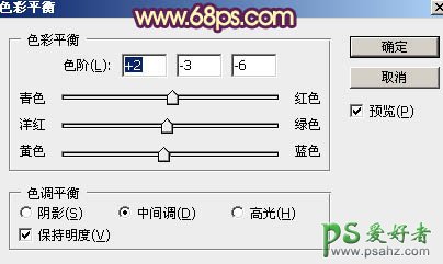 11、创建色彩平衡调整图层,对阴影、中间调、高光进行调整,参数设置如图26 - 28,确定后按Ctrl + Alt + G 创建剪切蒙版,效果如图29。这一步把人物部分调红一点。