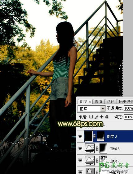 8、创建纯色调整图层,颜色设置为黑色,确定后把蒙版填充黑色,用透明度较低的白色画笔把底部区域杂乱的部分涂暗一点,效果如下图。