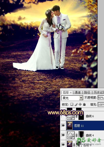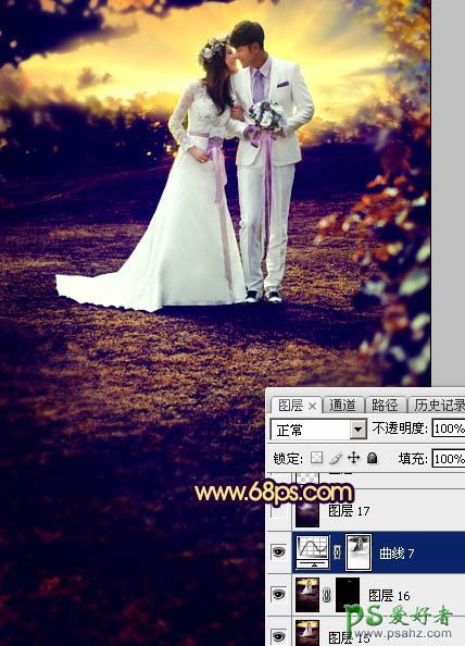 21、按Ctrl + Alt + 2 调出高光选区,按Ctrl + Shift + I 反选,然后创建曲线调整图层,对蓝色通道进行调整,参数及效果如下图。这一步给图片暗部增加蓝色。