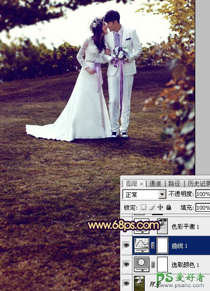 PS唯美婚片调色教程:给泛白的情侣婚纱照调出唯美的霞光色彩