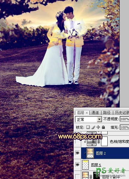 PS唯美婚片调色教程:给泛白的情侣婚纱照调出唯美的霞光色彩