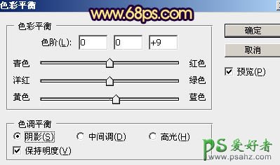 11、创建色彩平衡调整图层,对阴影,高光进行调整,参数及效果如下图。这一步给图片增加暖色。