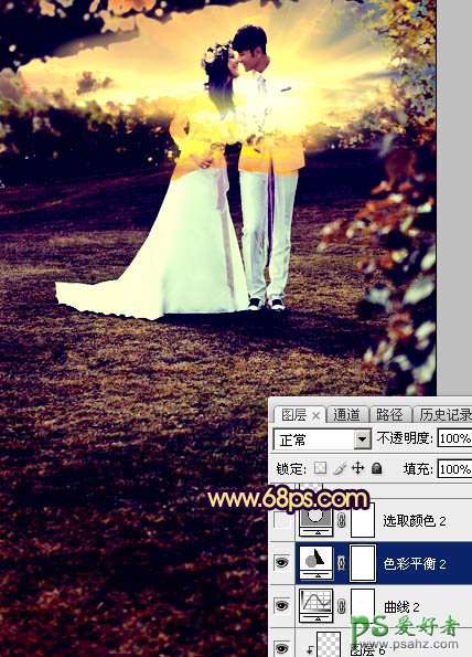 PS唯美婚片调色教程:给泛白的情侣婚纱照调出唯美的霞光色彩
