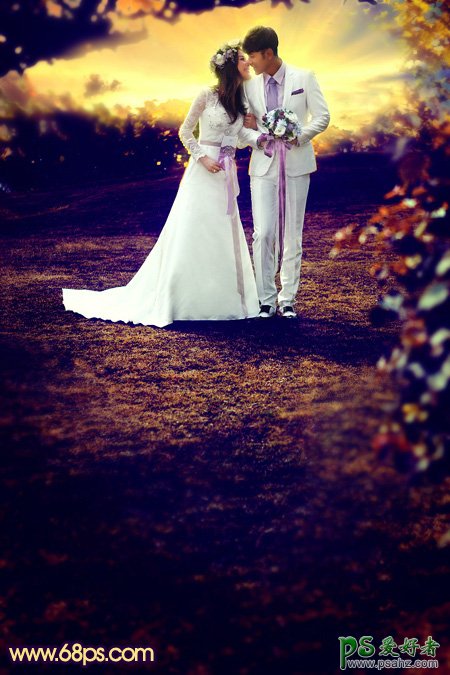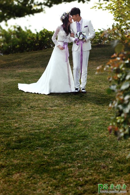 PS唯美婚片调色教程:给泛白的情侣婚纱照调出唯美的霞光色彩,素材图片取景非常不错,只是天空不给力,没有云彩也没有霞光。我们通过修图师后期美化、调色,让婚纱照变得更有魅力,推荐给大家练习一下。
