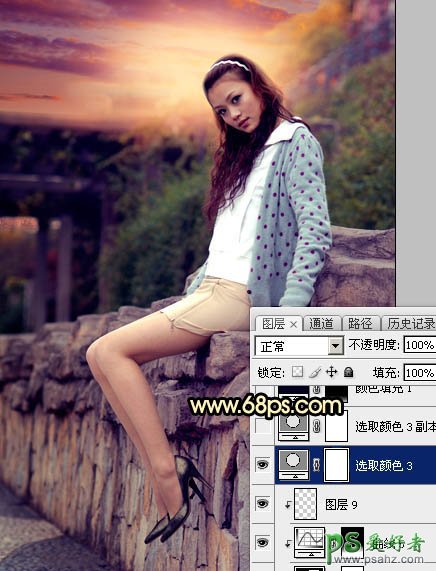 PS美女图片调色:给阴天外景美腿高跟美女艺术照调出唯美的霞光色