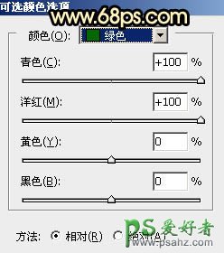 1、打开素材图片,创建可选颜色调整图层,对绿色进行调整,参数及效果如下图。这一步把图片中的绿色调暗一点。