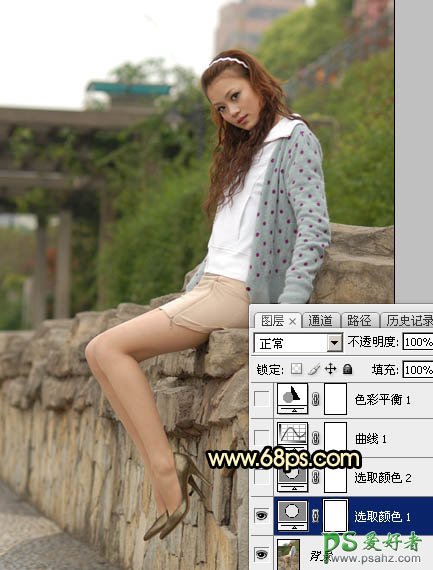 PS美女图片调色教程:给阴天外景自拍的美腿高跟美女艺术照调出唯美的霞光色,图片增加霞光会经常用到,过程也比较简单,对我们以后处理阴天照片,灰蒙蒙的照片很有帮助,喜欢的朋友们动手试一下吧! 原图 最终效果 1、打开素材图片,创建可选颜色调整