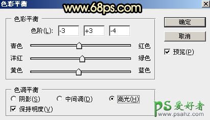 4、创建色彩平衡调整图层,对阴影,高光进行调整,参数及效果如下图。这一步主要给图片暗部增加蓝色。