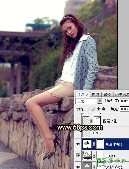 PS美女图片调色:给阴天外景美腿高跟美女艺术照调出唯美的霞光色