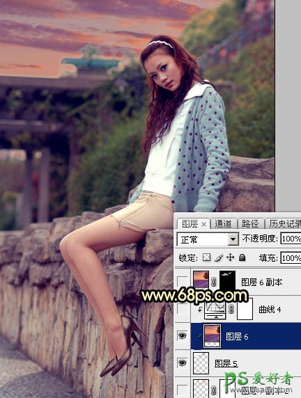 PS美女图片调色:给阴天外景美腿高跟美女艺术照调出唯美的霞光色