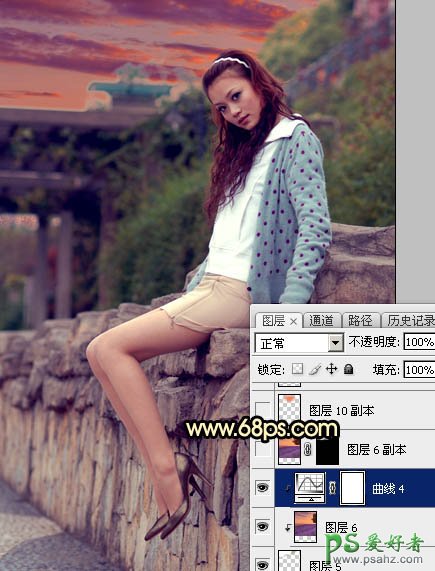PS美女图片调色:给阴天外景美腿高跟美女艺术照调出唯美的霞光色