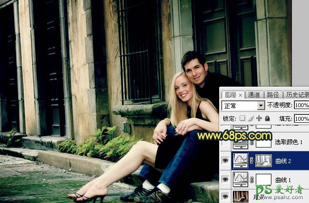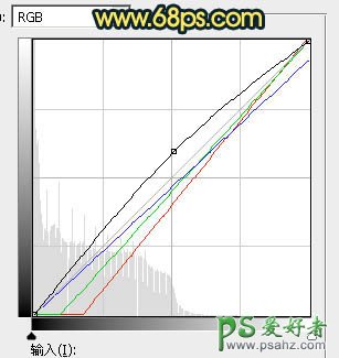 2、按Ctrl + Alt + 2 调出高光选区,按Ctrl + Shift + I 反选得到暗部选区,然后创建曲线调整图层,对RGB、红、绿、蓝通道进行调整,参数及效果如下图。这一步把暗部颜色稍微调亮,并增加绿色。