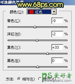 4、创建可选颜色调整图层,对红、黄、白、中性、黑进行调整,参数设置如图14 - 18,效果如图19。这一步微调图片中的暖色,并给高光及暗部等增加青色。